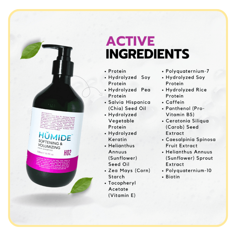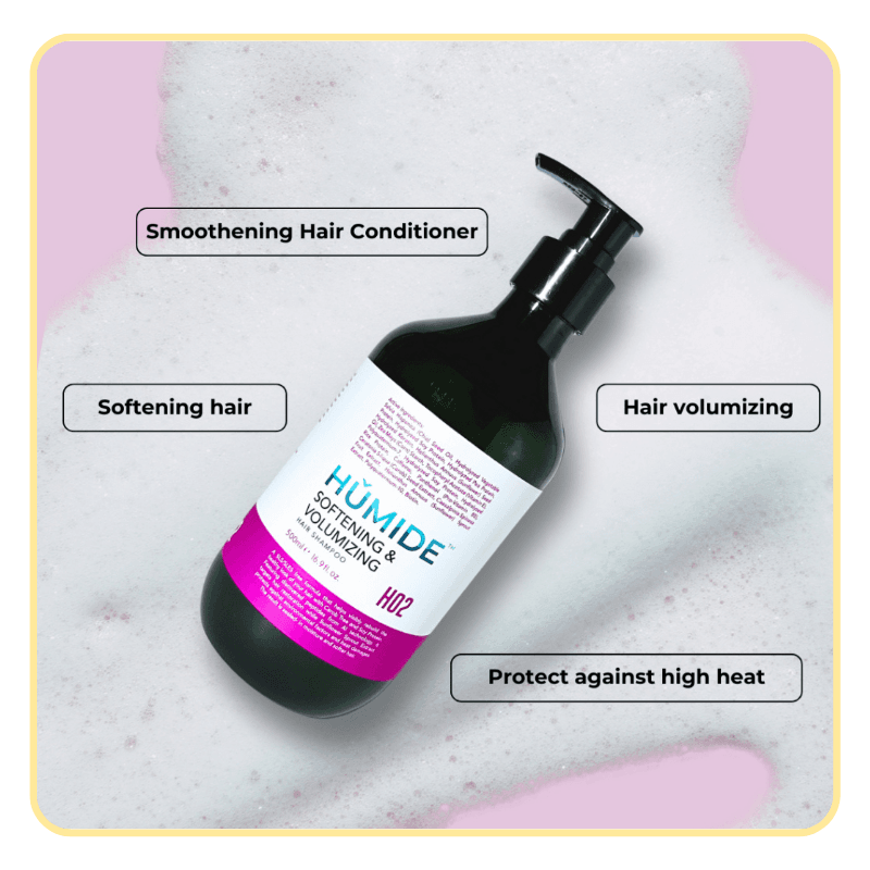 HUMIDE Softening & Volumizing Hair Shampoo is designed for thin, flat, or dry hair that needs lift, softness, and bounce. Powered by AI-discovered peptides, natural proteins, and Chia Seed Oil, this gentle cleanser rebuilds and revitalizes hair while protecting it from heat and pollution damage.