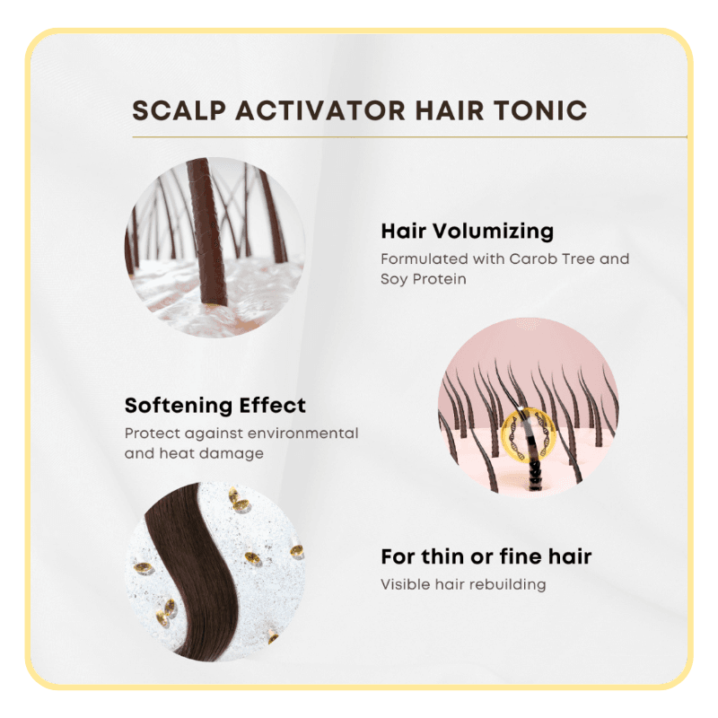 - Carob Tree & Soy Protein: Boost volume and fortify weak hair fibres.